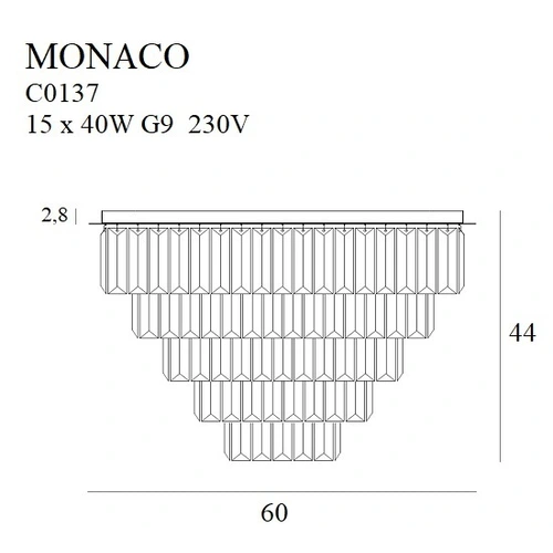 Moc/Power: 15 x 40W G9 230VH: 44 cm Ø: 60 cm