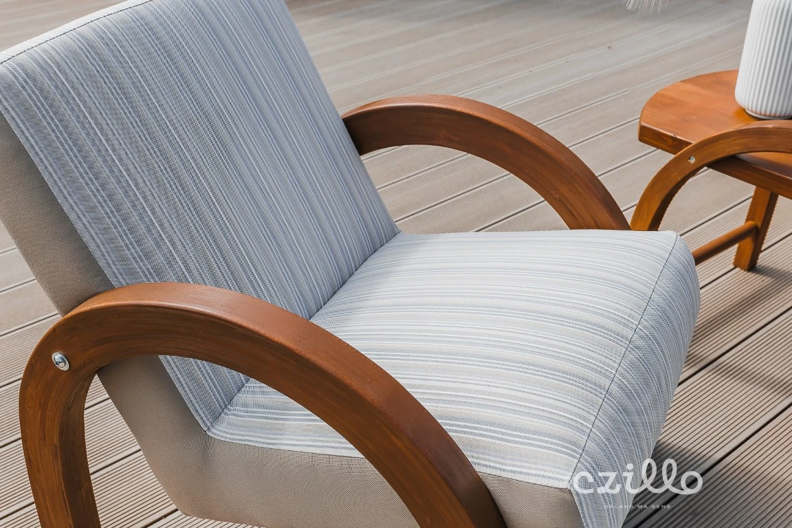 To, co wyróżnia fotel Sereno, to przemyślany design, który łączy elegancką prostotę z maksymalną funkcjonalnością. Zaokrąglone kształty, delikatne linie i idealnie dobrane proporcje sprawiają, że fotel harmonijnie wpasuje się w każde wnętrze – od nowoczesnych loftów po przytulne sypialnie czy ogrody zimowe. A dzięki dostępności w trzech kolorach tapicerki (ecru, zielony, niebieski) oraz trzech wariantach drewna (naturalny, brązowy, grafitowy) z łatwością dopasujesz go do swojego stylu.